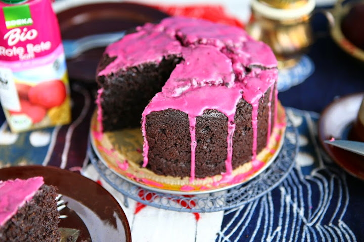 - Combine the sifted powdered sugar with the beet juice until smooth. Pour the glaze over the cake and allow the icing to set.